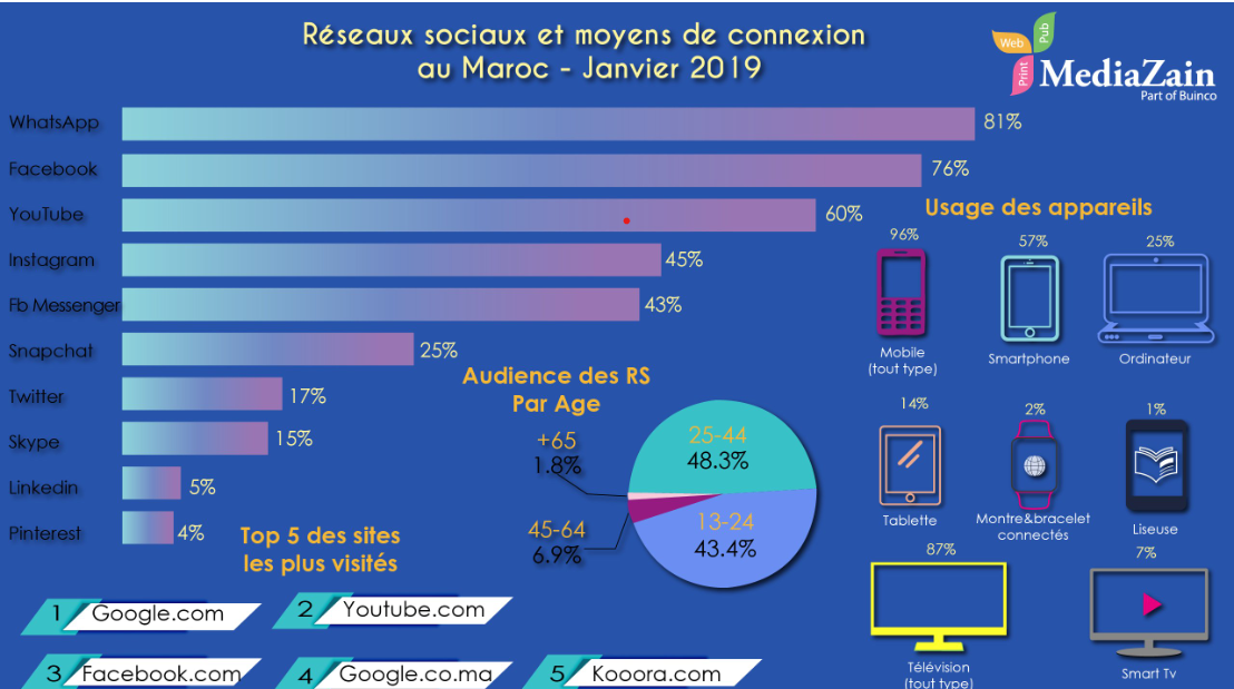 Grâce à l’usage massif des réseaux sociaux et au taux de pénétration d’internet de 62%, le Maroc maintient toujours son leadership africain au niveau Digital.